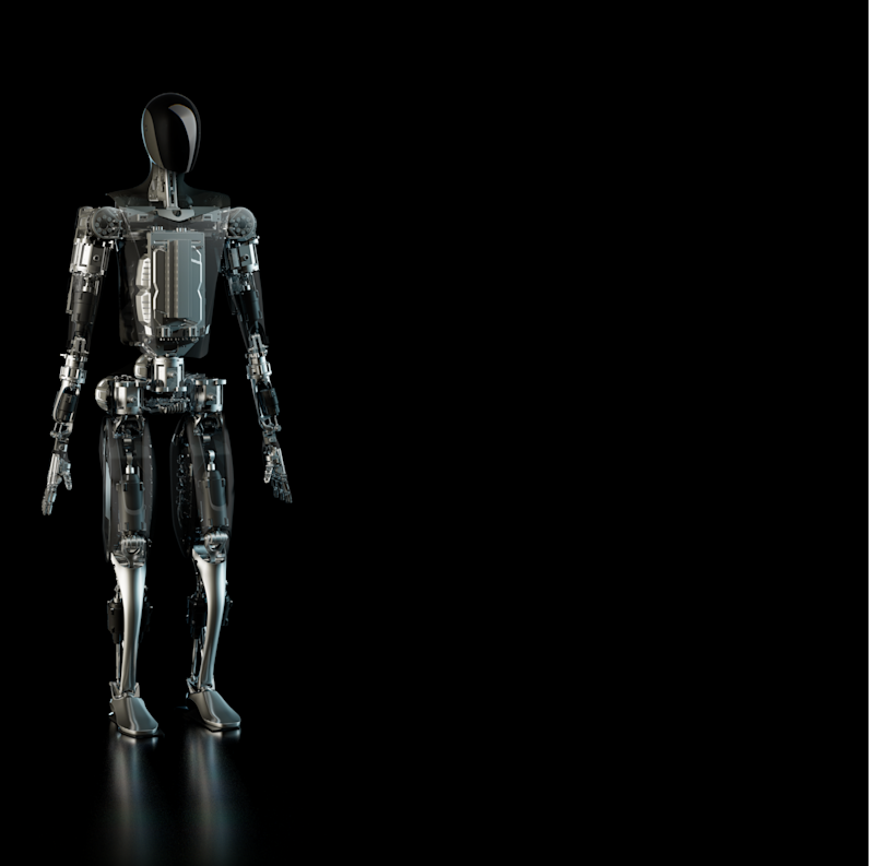 Optimus under its “skin.” It probably isn’t coming to a shop near you anytime soon. (Image: Tesla)