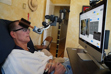Henry Evans uses the Stretch mobile manipulator to brush his hair.