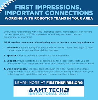 To learn more about making connections with the future workforce, visit imts.com/smartforce or reach out to AMT’s Director of Education Catherine "Cat" Ross at CRoss@AMTonline.org.
