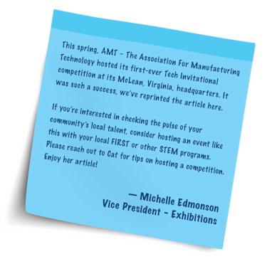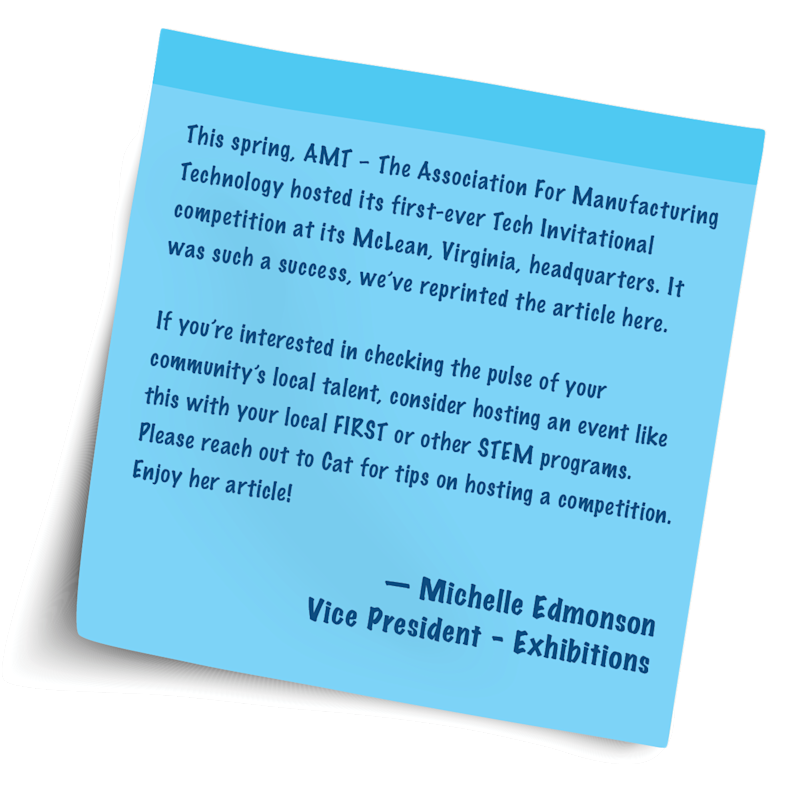 The AMT Tech Invitational competition – held at AMT’s McLean, Virginia, headquarters – showcased the work of three FIRST Tech Challenge robotics teams from the Washington, D.C., region. The teams competed in a “Shark Tank”-style contest for a $1,000 cash prize. During their pitches, the students addressed the unique capabilities of their robots, as well as their approach to problem solving and teamwork.