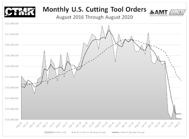 "Cutting tool orders continue to remain soft in August 2020 but appear to have found a bottom. Orders of $136M were only -0.2% below July orders of $136.3M but were still -33.5% below August 2019. Year-to-date orders remain weak at down -23.4%. The weakness is a continuation of the order decline that began in the spring of 2019, impacted by inventory liquidation, and exacerbated by the Covid-19 pandemic which virtually shut down the U.S. economy,” commented Eli Lustgarten, President of ESL Consultants. He later added, “The good news is that U.S. manufacturing has now undergone over four months of improvement with the ISM PMI over 50 (Sept 2020 was 55.4) with the recovery led by automotive (largest buyer of cutting tools), appliances, electrical, and general manufacturing. Any improvement in demand will likely be moderate and volatile near-term reflecting the ongoing severe weakness in key markets such as aerospace and energy as well as uncertainty of the strength of economic growth after the big U.S. GDP rebound in Q3 2020.”