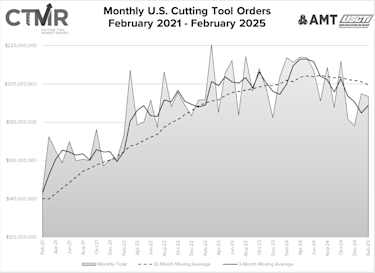 “Orders for cutting tools in the United States continue to lag behind the numbers posted in 2024,” said Steve Boyer, president of USCTI. “Significant declines in year-over-year totals suggest a lack of confidence in current markets. While we have gained some clarity in our country’s leadership, the policies – specifically the full impact of imposed tariffs – cannot yet be gauged. I believe any optimism we may have had entering 2025 will be delayed until we learn more about the tariffs and their effects on the major markets we serve.”
