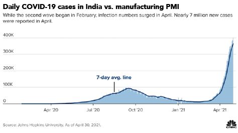 India’s Manufacturing PMI has remained strong despite rising COVID-19 infections.