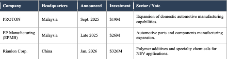 FDI Announcements: Malaysia