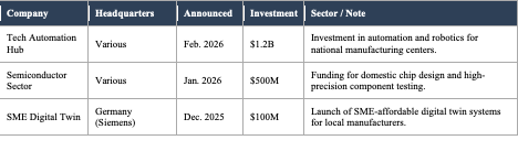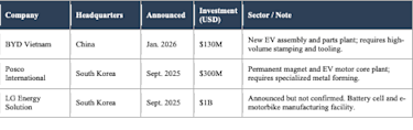 A pivotal policy development: Decree 205/2025, which took effect in September 2025, provides up to 50% funding for domestic firms investing in advanced machinery, CNC systems, and industrial robots, specifically to raise the localization rate of automotive and electronic parts. The market implications are significant and will be explored in depth in future reports.