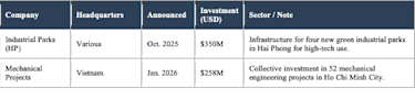 FDI Announcements: Vietnam