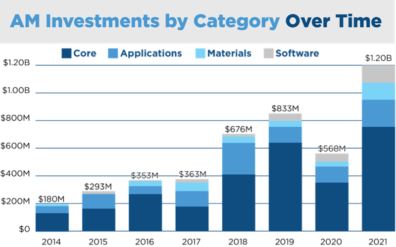 The last 21 months have seen the most active investment period on record for additive manufacturing (AM) companies. The investment announcements, when taken in aggregate, reflect the collective entrepreneurial effort in each technology category as well as the interest level from financial and corporate strategic investors. Reviewing these data highlighted numerous growth trends in AM across four broad subcategories.