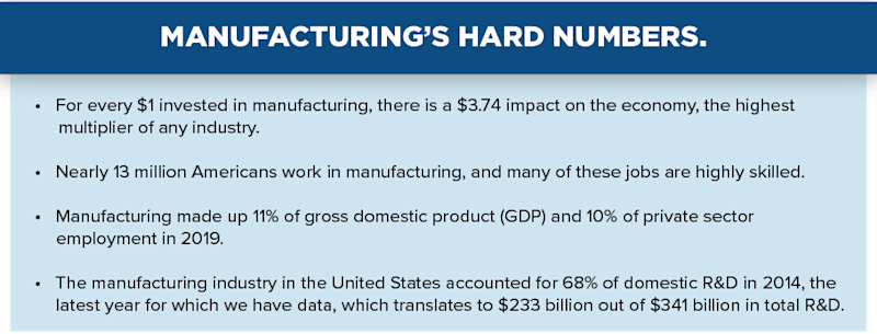 Despite the growing importance of the service sector, manufacturing is still the foundation of economic life in the United States. Almost everything that we use in our everyday life was touched by machine tools – appliances, transportation, medical and agricultural equipment, energy infrastructure, food and beverage production – the list goes on. Manufacturing is also a major engine of economic power, employment, and a source of innovation for the economy as a whole. Yet, it took the supply chain disruptions caused by the COVID-19 pandemic for some business leaders and politicians to understand how critical the manufacturing industry is to the United States and its national security – from securing medical supplies to providing basic components of everyday products.