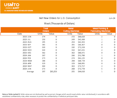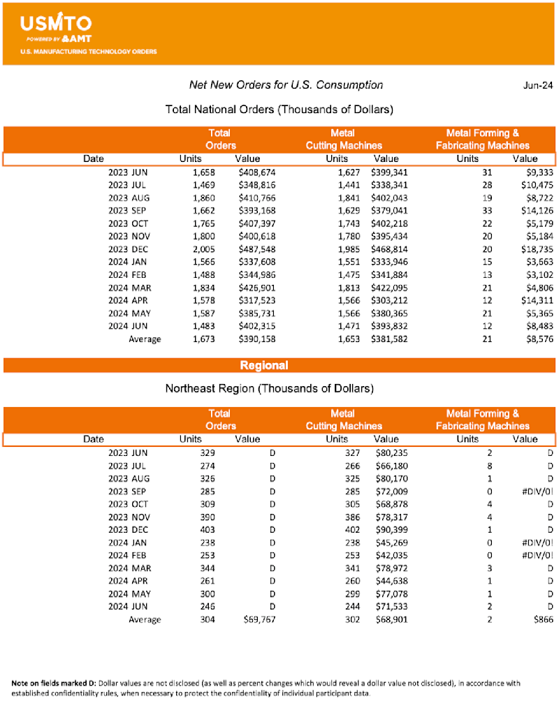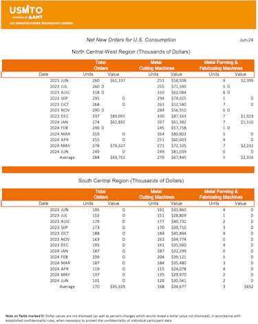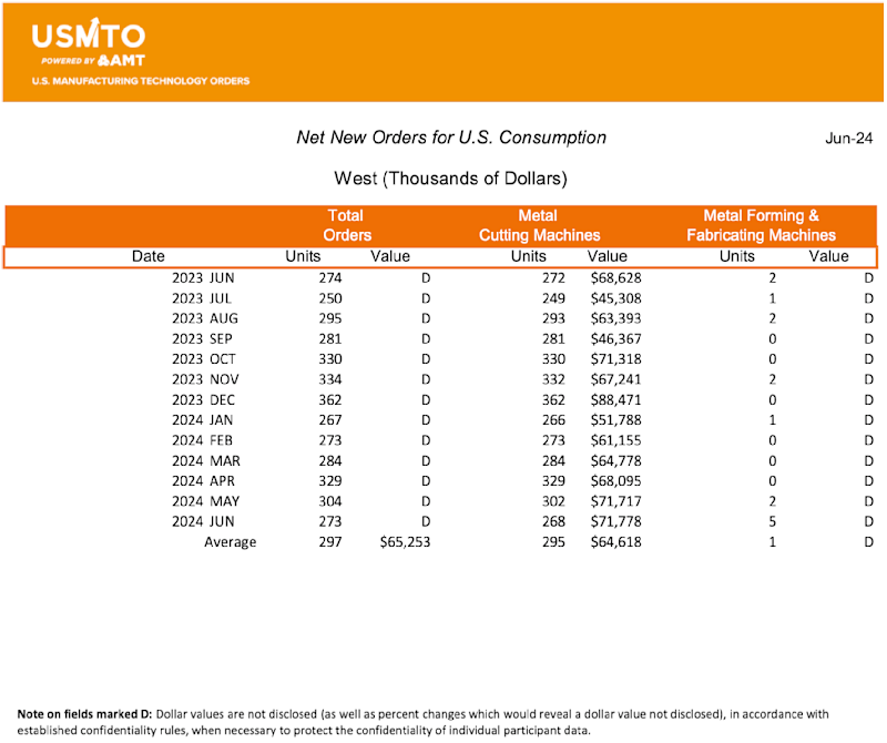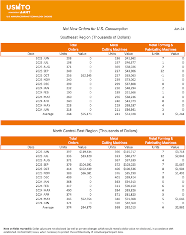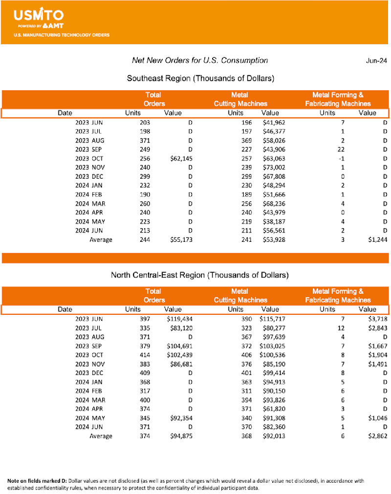 The United States Manufacturing Technology Orders (USMTO) Report is based on the totals of actual data reported by companies participating in the USMTO program. This report, compiled by AMT – The Association For Manufacturing Technology, provides regional and national U.S. orders data of domestic and imported machine tools and related equipment. Analysis of manufacturing technology orders provides a reliable leading economic indicator as manufacturing industries invest in capital metalworking equipment to increase capacity and improve productivity. USMTO.com.