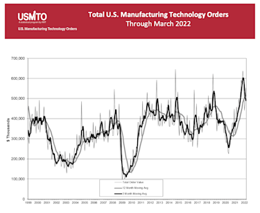 “The first quarter of 2022 has been extremely impressive for manufacturing technology orders,” said Pat McGibbon, Chief Knowledge Officer at AMT. “Previous forecasts had predicted a strong beginning to 2022 and a soft summer which would rebound by IMTS in September, as summer orders are often delayed in anticipation of new products being exhibited at IMTS. However, inflation, the war, and saber-rattling in the east are creating a level of uncertainty and risk that businesses must consider. Despite these challenges, we see the manufacturing sector continuing to invest in additional capacity.”
