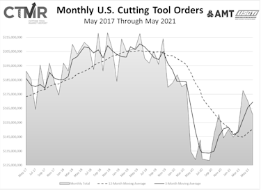 According to Brad Lawton, chairman of AMT’s Cutting Tool Product Group, “The cutting tool industry hope, not strategy, in March was that sales volume would continue to move toward pre-pandemic values. Industry sales slowed month over month in May because of supply chain issues after sales were up in March significantly due to quarterly restocking by distributors. Despite these conditions, the cutting tool industry remains poised to respond to U.S. manufacturing customers.”