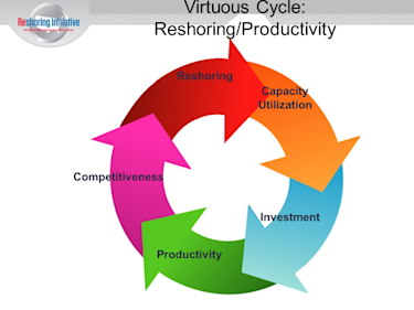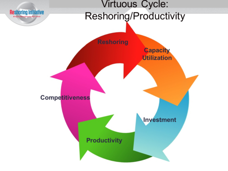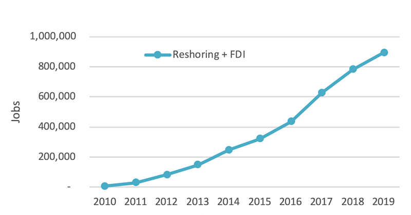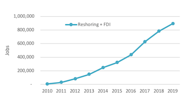ReEvaluate and ReEngage! Allowing for a one to two-year lag from announcement to hiring, reshoring and FDI are responsible for about 750,000 manufacturing jobs and about 6% of the current total jobs. Now is an especially good time for companies to reevaluate the choice of domestic vs. offshore production. To help with the reevaluation, the Reshoring Initiative® website provides tools to help companies decide objectively whether their overhead will come down more than their manufacturing cost goes up when sourcing locally.