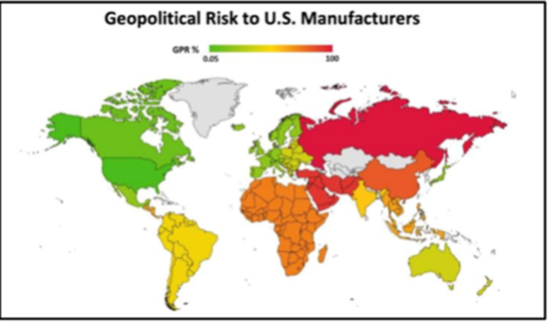 Calculating Risk with TCO Companies can utilize the Reshoring Initiative’s free TCO Estimator and Geopolitical Risk measure to compare alternative and local sourcing options. Geopolitical risk (GPR) is defined as the likelihood that, within one year, a significant disruption in trade will occur, causing the U.S. to stop importing goods from a particular country due to a negative geopolitical event.