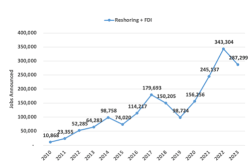 Read the full report: Reshoring Initiative 2023 Annual Report: Reshoring and FDI Job Announcements Reach 287K - Second Highest Year on Record