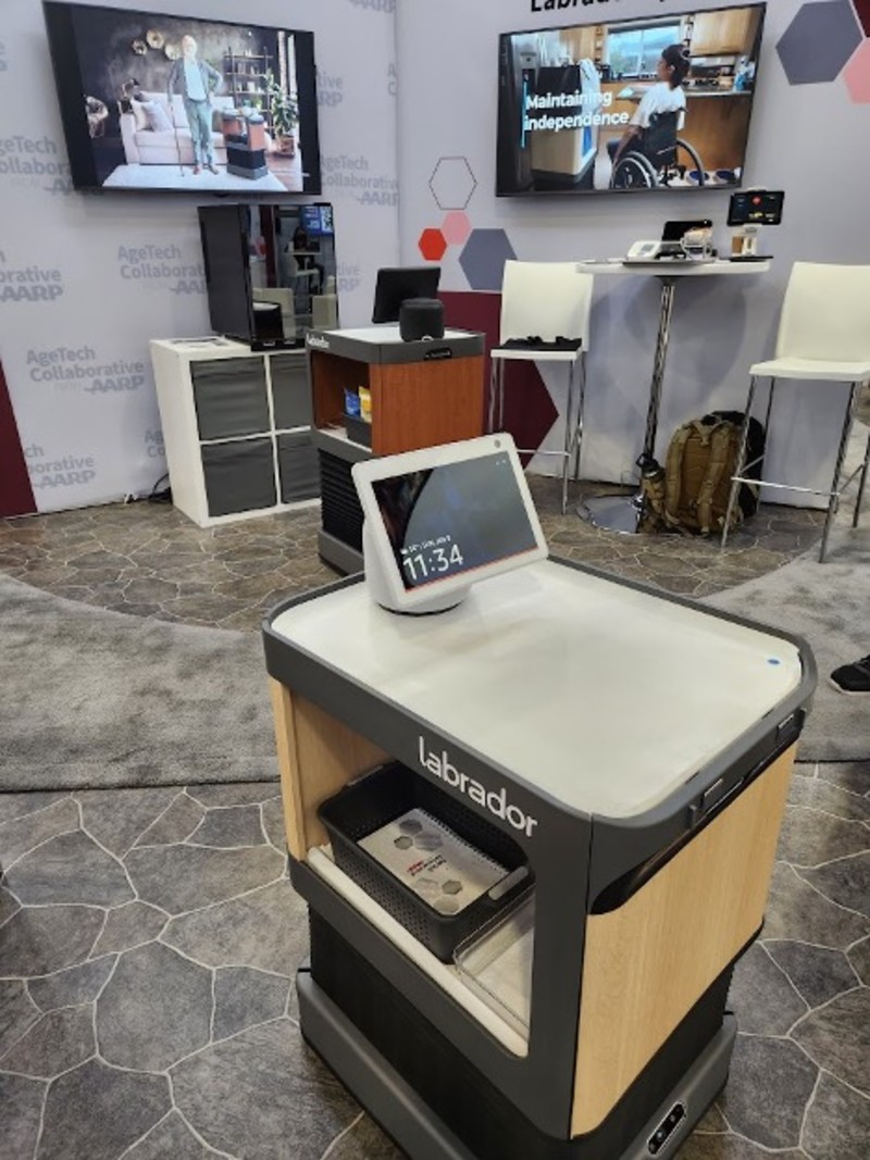 Two Retrievers from Labrador Robotics in the AARP Innovation Lab Pavilion at CES 2023. (Image source: Andra Keay)