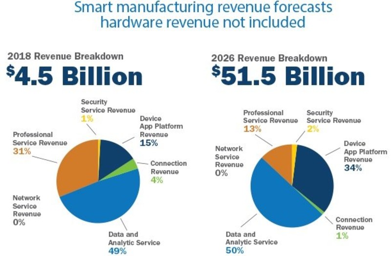 Smart manufacturing revenue will grow substantially during the next eight years, from $4.5 billion this year to $51.5 billion in 2026.