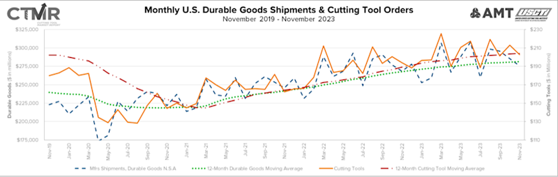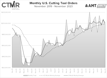 “Aerospace and automotive markets are still working on an impressive backlog and sales that will continue to keep most shops busy well into the new year,” declared Jack Burley, chairman of AMT’s Cutting Tool Product Group. “Despite high inflation and interest rates, there is still a positive mood for most companies who are working in manufacturing. This should be good news for 2024 forecasts within our industry.”