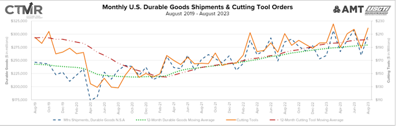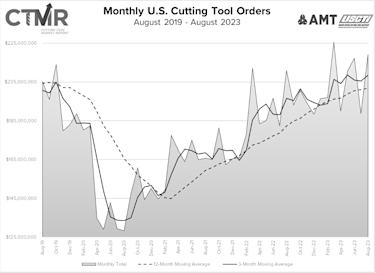 Costikyan Jarvis, president of Jarvis Cutting Tools, conveyed a similar thought: “The August cutting tool report shows the continued strength of the manufacturing sector. Obviously, there are some concerns, both immediate and medium term.On the immediate side, the UAW strike creates uncertainty around automotive production. On the medium-term side, where and how the higher interest rates affect production remain to be seen, and, globally, we now have two major armed conflicts. Even with these concerns, there is promise for continued improvement. There is considerable investment in infrastructure projects, and reshoring the production of many components and entire processes will drive increased cutting tool demand.”
