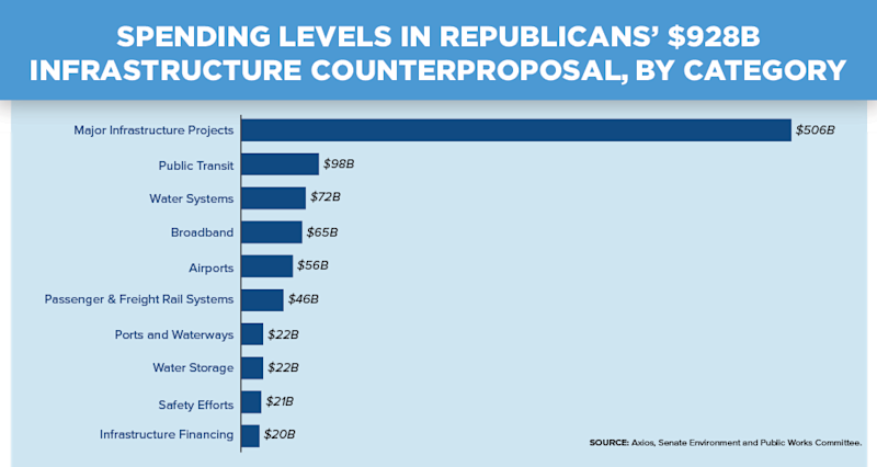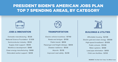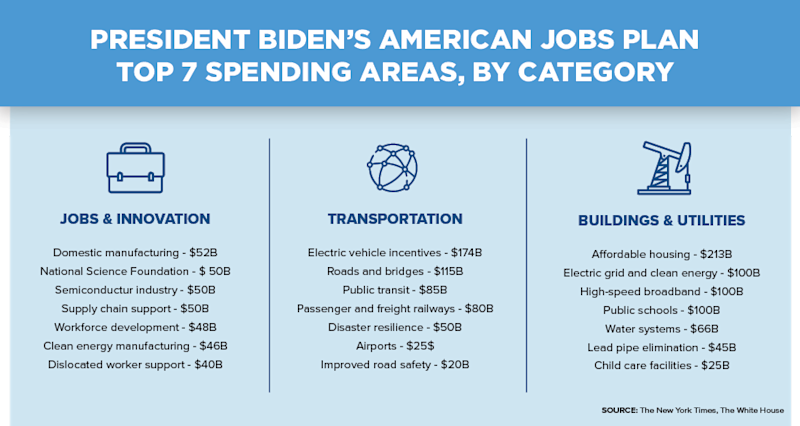 The Biden administration continues to promote the president’s $2 trillion American Jobs plan aimed at creating jobs and addressing infrastructure. Senate Republicans have countered with a proposal of less than half the size. Biden’s plan is a comprehensive overhaul, pushing domestic manufacturing, electric vehicle incentives, affordable housing, climate technology, and much more. The GOP’s plan emphasizes traditional infrastructure, including funding for improved roads, ports, airports, water infrastructure, and broadband expansion.