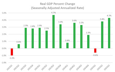The U.S. economy grew by 4.3% in the third quarter of 2025, according to the latest GDP report released by the Bureau of Economic Analysis just prior to Christmas. While this report was delayed by about two months because of the government shutdown, the report showed stronger-than-expected growth, making further monetary accommodation unlikely in the first few months of 2026. Stay tuned to the latest USMTO reports to learn how orders for capital equipment fared in the remainder of the year, and be sure to attend AMT’s Winter Economic Forum on Jan. 30 to get the latest outlook for the manufacturing landscape in 2026.