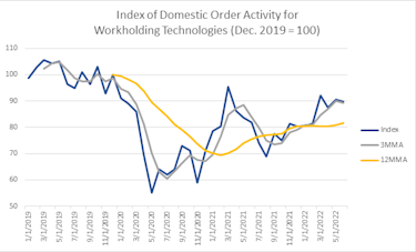 Both domestic orders and exports were at the highest level since the second half of 2019. In addition to taking on new orders, manufacturers of workholding technologies reported declining backlogs in every month of 2022 after hitting a peak of just above $60 million in January 2022. Average monthly employment among workholding manufacturers is at the highest level since the first half of 2019.