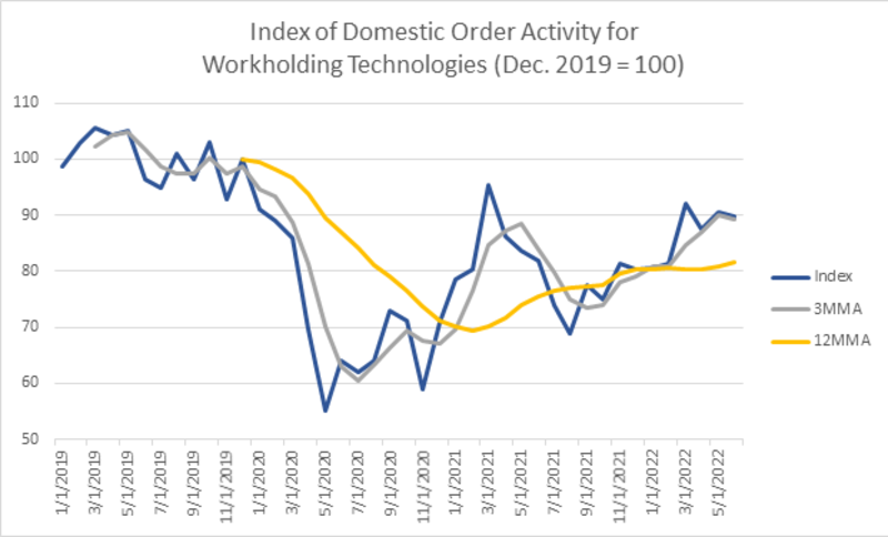 “Over the last two years, we have seen several industries bring production back to the United States to shorten and secure supply chains,” said Douglas K. Woods, president of AMT. “This has created a need for additional capacity, which we have been seeing in the data on machinery orders. In addition to the workholding needed for the new machinery, the growing mix of parts now produced domestically are fueling an uptick in overall demand for workholding technologies.”