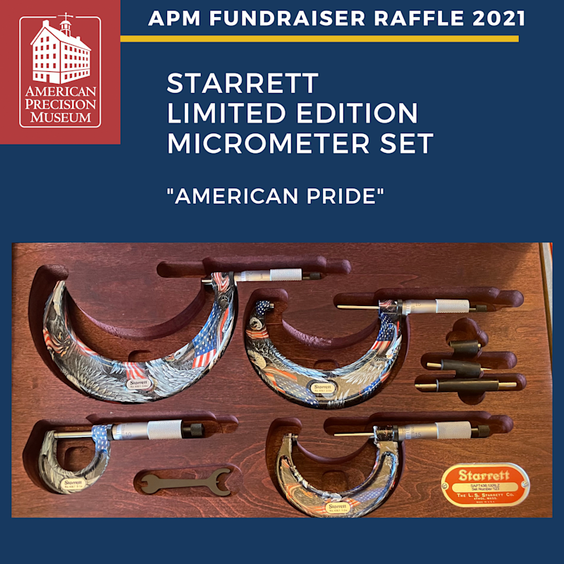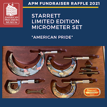 Thanks to a generous donation from the L.S. Starrett Company, the American Precision Museum (APM) is pleased to announce a fundraising raffle of a limited edition, 0-4 inch OD micrometer set in the “American Pride” color scheme. The set is valued at over $1,000.