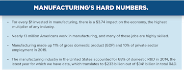 Despite the growing importance of the service sector, manufacturing is still the foundation of economic life in the United States. Almost everything that we use in our everyday life was touched by machine tools – appliances, transportation, medical and agricultural equipment, energy infrastructure, food and beverage production – the list goes on. Manufacturing is also a major engine of economic power, employment, and a source of innovation for the economy as a whole. Yet, it took the supply chain disruptions caused by the COVID-19 pandemic for some business leaders and politicians to understand how critical the manufacturing industry is to the United States and its national security – from securing medical supplies to providing basic components of everyday products.