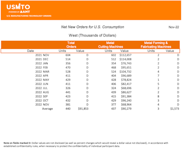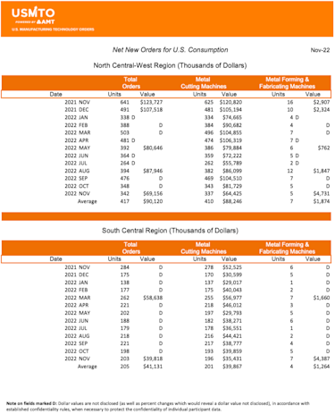 The United States Manufacturing Technology Orders (USMTO) Report is based on the totals of actual data reported by companies participating in the USMTO program. This report, compiled by AMT – The Association For Manufacturing Technology, provides regional and national U.S. orders data of domestic and imported machine tools and related equipment. Analysis of manufacturing technology orders provides a reliable leading economic indicator as manufacturing industries invest in capital metalworking equipment to increase capacity and improve productivity.