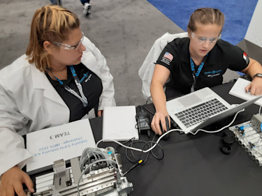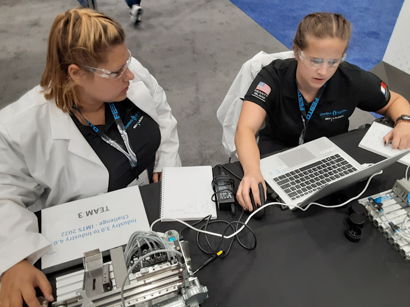 Photo caption: Katie Borrelli and Carolyn McGowen, employees at Airbus OneWeb Satellites, talk about their experience at the Space Coast Consortium/Festo Mechatronics Apprentice Competition, held recently at the IMTS 2022 Smartforce Student Summit. They share the challenges of the 3-day cyber-physical competition, the exhilaration of winning first place, and the importance of having more women in STEM careers. (edited)