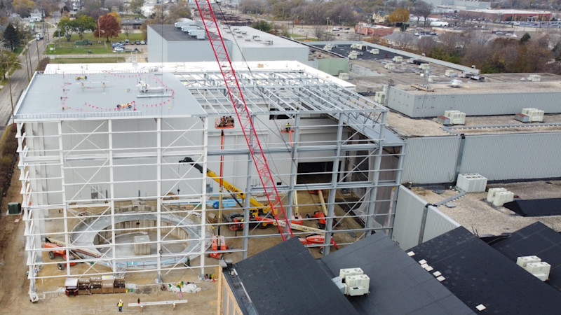 Construction of the Ingersoll Machine Tools assembly hall for factory integration and acceptance testing of the Giant Magellan Telescope mount. Image credit: Ingersoll Machine Tools