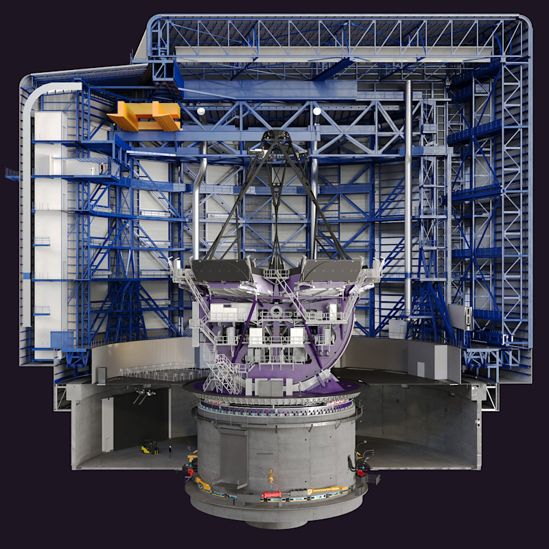 Cross section rendering of the Giant Magellan Telescope enclosure, pier, and mount. Image credit: Giant Magellan Telescope – GMTO Corporation.