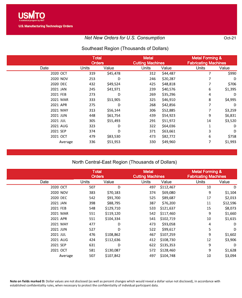 “The manufacturing technology market is flourishing in the current economic environment. Unfortunately, the impact on the bottom line isn’t as significant,” said Douglas K. Woods, president of AMT. “Our members are caught between higher material, component, and transportation costs and a customer base that is resisting price increases. This is an issue that will only grow worse if Federal Reserve actions this winter lead to higher interest rates. I believe it would be counterproductive to tighten monetary policies and raise the cost of expanding capacity at a time when our nation is experiencing an unparalleled supply chain disruption.”
