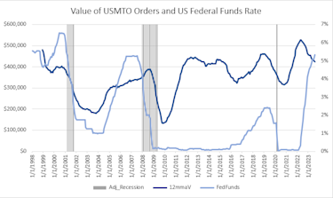 While the current interest-hiking cycle that started in March 2022 appears to suggest that MT orders react rapidly to changes in rates, history paints a less clear picture. Demand for MT may be less sensitive to interest rates than other products in the durable goods sector; the decline in orders relative to the current interest rate hikes may have more to do with the level of capacity reaching equilibrium with the demand for manufactured products, easing price pressures. More broadly, all cycles of rising interest rates coincide with periods of falling unemployment, increased consumption, and rising industrial production. Orders for manufacturing technology would naturally be supported during this period; as long as parts are needed to make the goods consumers and businesses need, additional machinery will be purchased to meet those demands – even in the face of rising interest rates.