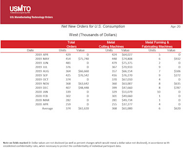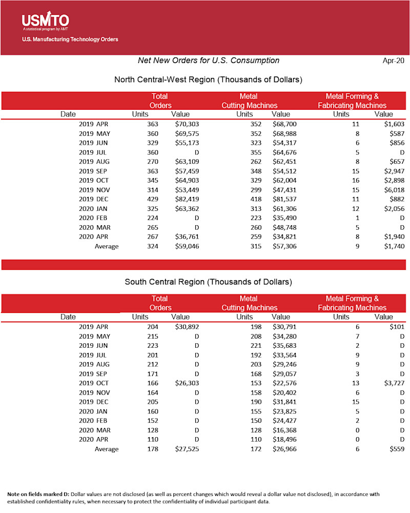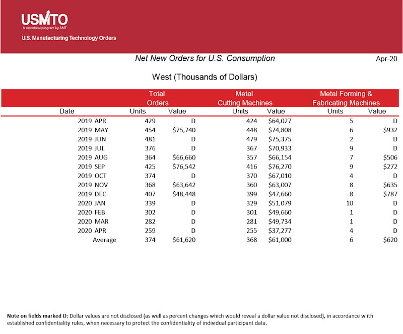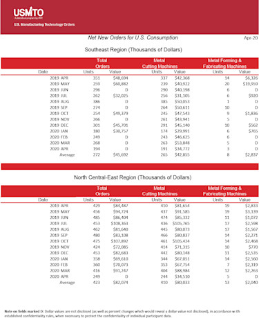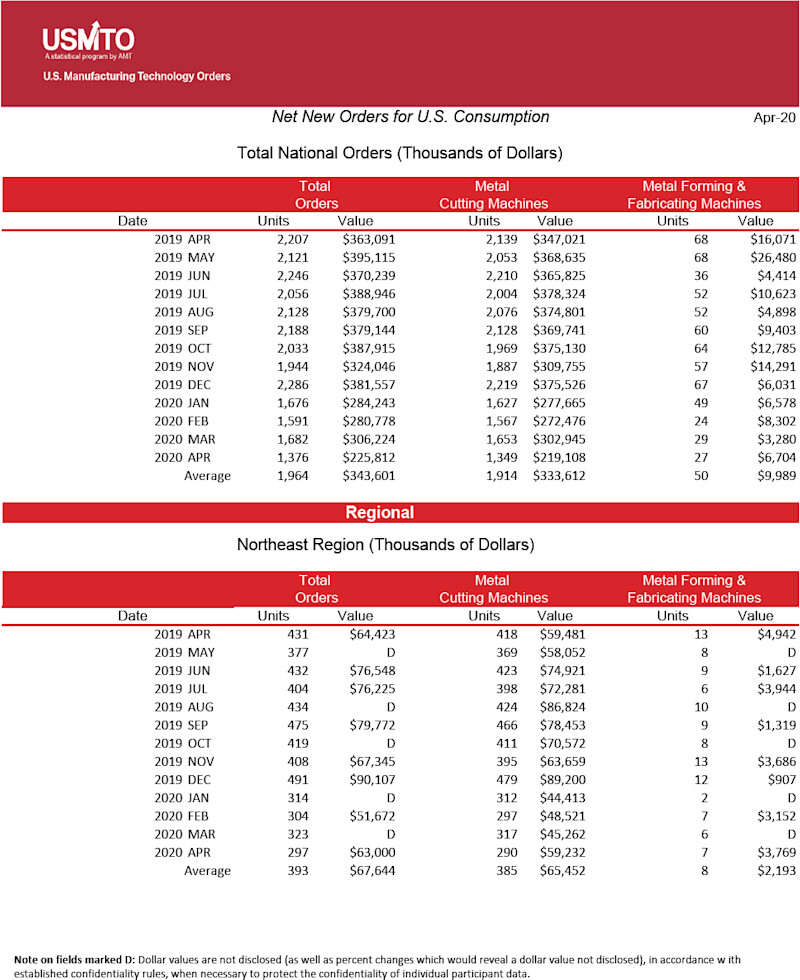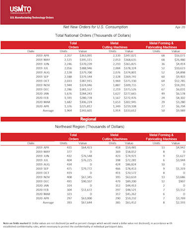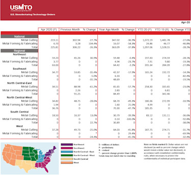 The United States Manufacturing Technology Orders (USMTO) Report is based on the totals of actual data reported by companies participating in the USMTO program. This report, compiled by AMT – The Association For Manufacturing Technology, provides regional and national U.S. orders data of domestic and imported machine tools and related equipment. Analysis of manufacturing technology orders provides a reliable leading economic indicator as manufacturing industries invest in capital metalworking equipment to increase capacity and improve productivity.