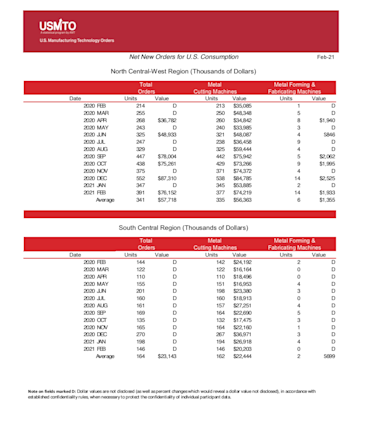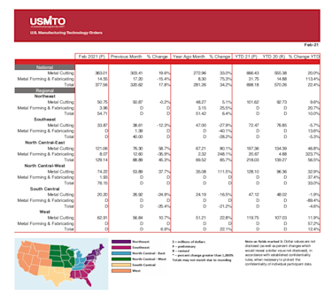 “February was the fourth-straight month of year-over-year gains in manufacturing technology orders, signaling the recent strength is likely the beginning of a sustained recovery following the 2020 recession,” said Douglas K. Woods, president of AMT. “There was a surprising uptick in February orders from the oil and gas industry despite the weather-related turmoil in the South-Central and Southeast regions, which typically drive the sector. Medical equipment manufacturers markedly increased orders in February, likely the result of increased hospital capacity allowing delayed elective procedures to be scheduled.