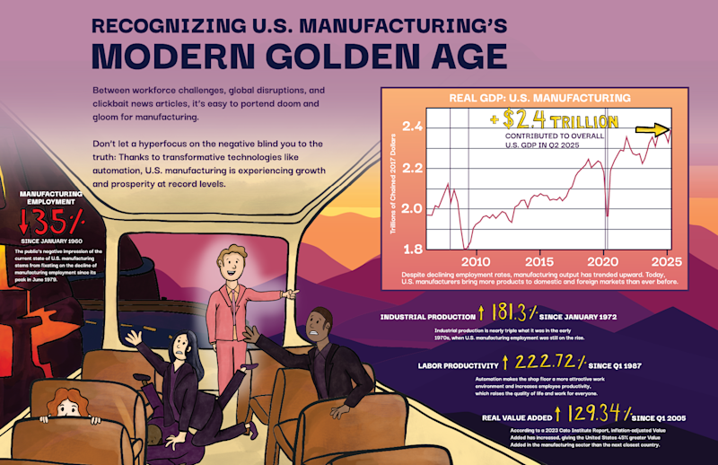 Other measures of manufacturing activity tell a similar story. Since manufacturing employment peaked in June 1979, industrial production has doubled. Real value added by U.S. manufacturers reached its highest level in the second quarter of 2025. While current manufacturing output is at a historical high, the investments made today will determine the future competitiveness of U.S. manufacturing. The next chapter will be written by those who build yet-to-be-invented products and utilize processes that have yet to be tested.