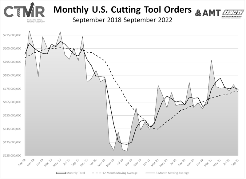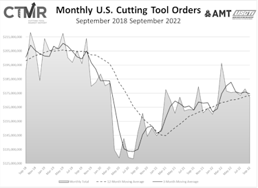 “As we review September’s data and the YTD performance of the cutting tool industry, two questions come to mind,” commented Brad Lawton, chairman of the AMT Cutting Tool Product Group. “How much of the YTD dollar volume increase is due to inflation, and is the September decline the start of the forecasted recession? As the industry struggles to answer these questions and other business demands, the next few months will provide answers.”