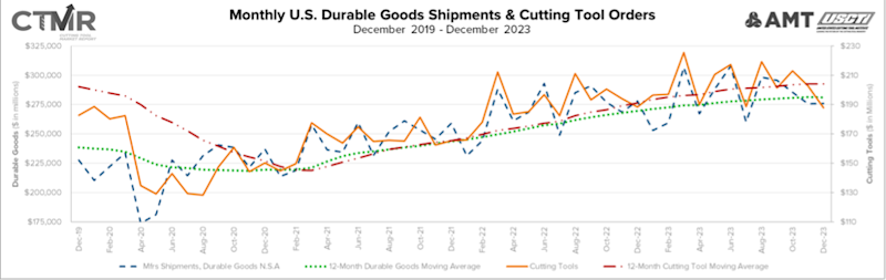 Mark Killion, director of U.S. industries at Oxford Economics, added: “After a strong start to 2023, shipments of cutting tools weakened in the last quarter of the year, falling 7.3% in December. As a result, shipments ended the year near their 2022 levels.”