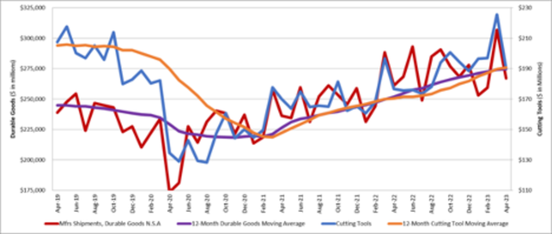 “After a spike in the first quarter of 2023, April shipments of cutting tools fell back to the levels seen at the start of this year, still remaining 7.5% above the April 2022 performance,” said Mark Killion, director of U.S. industries at Oxford Economics. He expanded on this, saying, “Demand from durable goods manufacturers has supported shipments over the past year but is now expected to turn weaker in coming months, in line with expectations for a shallow recession.”