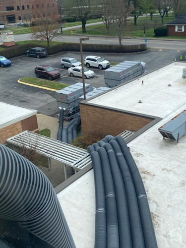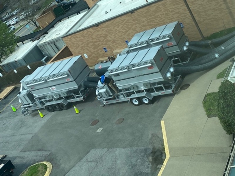 Within five days, the first of six 18-wheelers delivered the first IVEC modified Filt-Aire Dust Collector to the Tennessee hospital. Within two weeks, all eight collectors were in place around the hospital’s exterior. Each collector connects to 12-16” ductwork plumbed into windows near the virus unit.